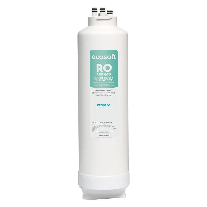 „Ecosoft“ 400 GPD membraninis elementas (RO) – tai didelio našumo atvirkštinio osmoso membrana, skirta efektyviam vandens valymui, pašalinant iki 99,8% nešvarumų, įskaitant bakterijas, virusus ir PFAS.