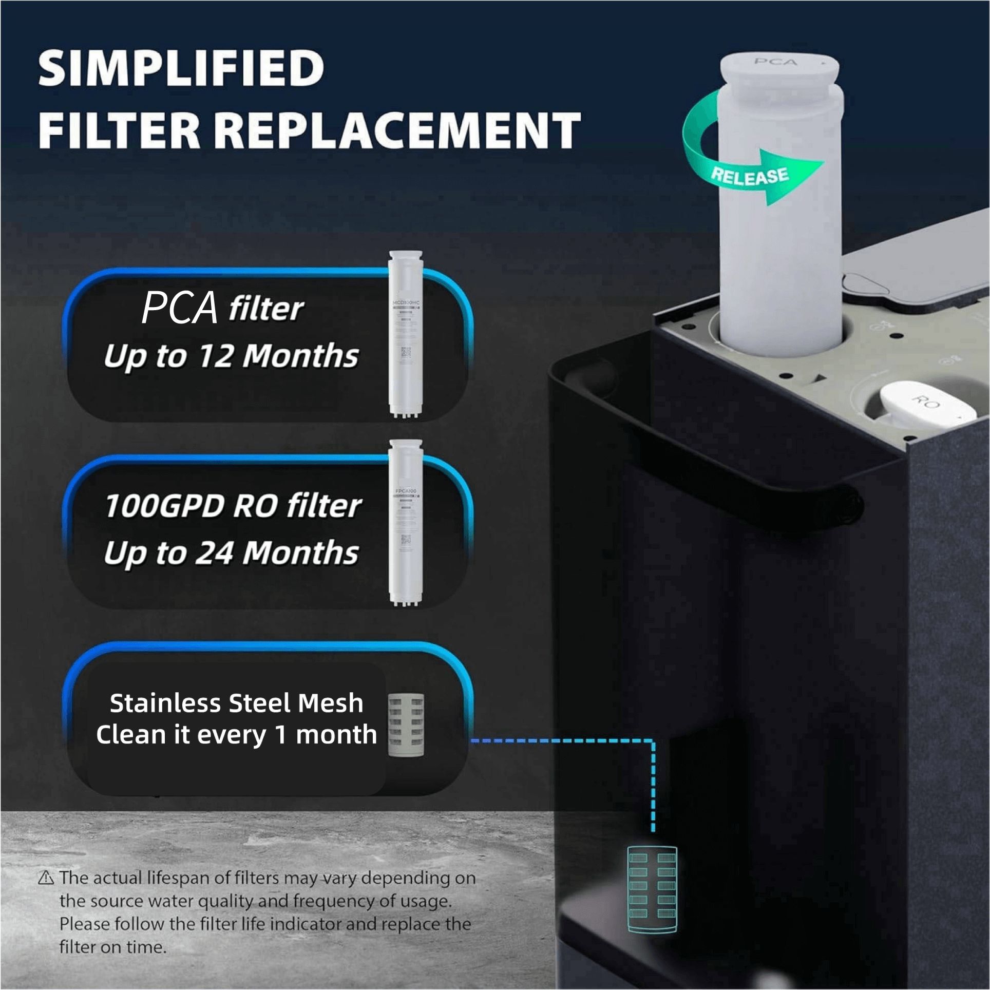 • RO membrana keičiama paprastu pasukimu – nereikia jokių įrankių.