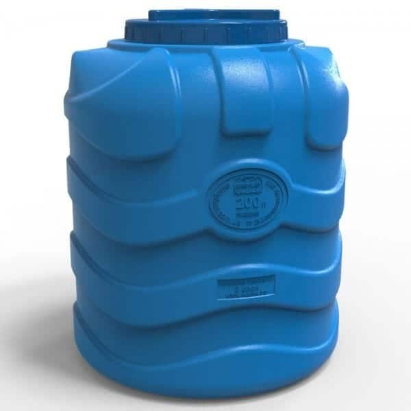 Talpa plastikinė vertikali trijų sluoksnių 200 litrų. Aukštis – 79 cm, skersmuo – 63 cm.